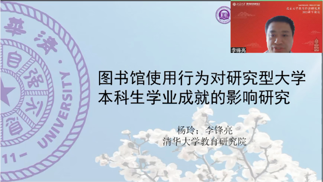 李锋亮教授分享了题为《图书馆使用行为对研究型大学本科生学业成就的影响研究》的主旨报告。该报告基于某所综合性研究型大学2018-2019学年2015-2018级共四个年级所有本科生的图书馆使用行为大数据,使用最小二乘估计、逻辑斯特回归、分位数回归和倾向分数配对的方法,考察了图书馆的使用与本科生学习成绩和获奖情况的关系。研究发现,在图书馆使用的各项行为中,进入图书馆学习、图书借阅等在很大程度上促进了学生专业课程的学习,且主要体现在学生的必修限选课课程成绩上。其次,图书馆设施设备作为学校的公共免费资源,也为不同就学特征、不同生源背景的学生在其学习过程中起到了帮助和支持作用。再次,图书馆开设的信息素养课程极大促进了医学学生的专业学习,并对其他学生的任选课成绩起到了的积极影响作用。此外,勤工助学岗位作为一项资助措施,对农村学生、西部学生的任选课成绩有显著影响。同时,图书馆提供的资源与服务对学生的获奖评奖结果也产生了一定的正向影响。最后,李锋亮教授提出四点建议:一是构建校内协同机制,实现教育数据共享;二是建立学校统一的教育数据存储平台,打通数据之间的壁垒,将数据有效对接;三是构建大学图书馆全方位价值评价体系;四是构建面向未来学习特征的大学图书馆。