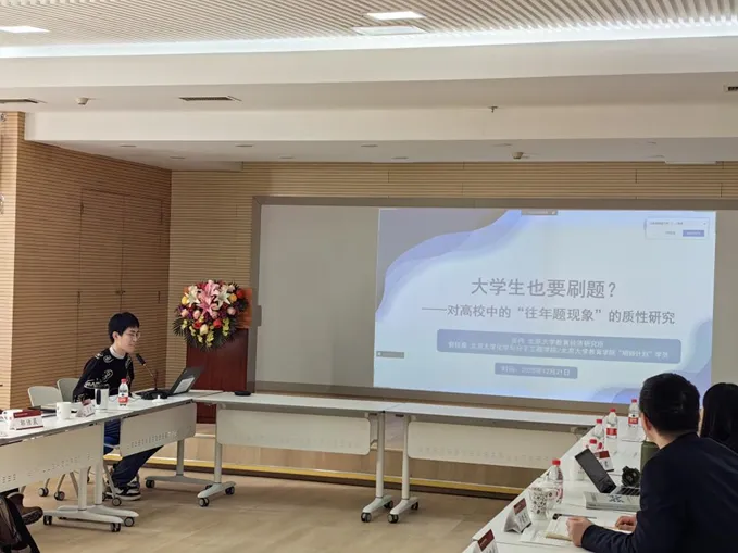 北京大学教育学院教育管理与政策系副主任张冉副教授和化学与分子工程学院博士研究生郭佳晨同学,作题为《大学生也要刷题?——对高校中的“往年题现象”的质性研究》的报告。临近期末季,往年题会成为高校同学们交流的热评词之一,本研究对学生、助教和老师采用半开放的访谈、自我参与式观察等方法,对高校往年题的现象产生的原因,对高校教育带来的影响,以及体现哪些伦理困境进行研究。研究发现,往年题虽然可以提高学生的成绩,但是会导致极低分数的出现;虽然可以降低学习成本,但是可能会产生负回报,且会导致对教育生态产生负面影响。最后,张冉老师和郭佳晨同学还强调,期末考试评分标准需考虑多因素,包括效度、信度、公平性等。同时,需注意知识产权和保密问题,并重新审视教育效度和合法性。不应过分依赖成绩作为衡量标准。