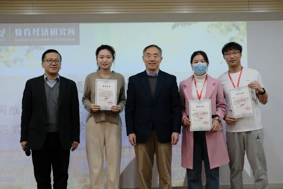北京大学教育经济研究所副所长岳昌君教授宣布优秀论文评选结果,北京大学教育学院名誉院长闵维方教授为获奖同学颁奖。本届论坛共收到来自39所高校的中英文论文61篇,邀请来自北京大学、复旦大学、南京大学、华中科技大学、厦门大学等高校的24位专家学者进行了两轮匿名评审。