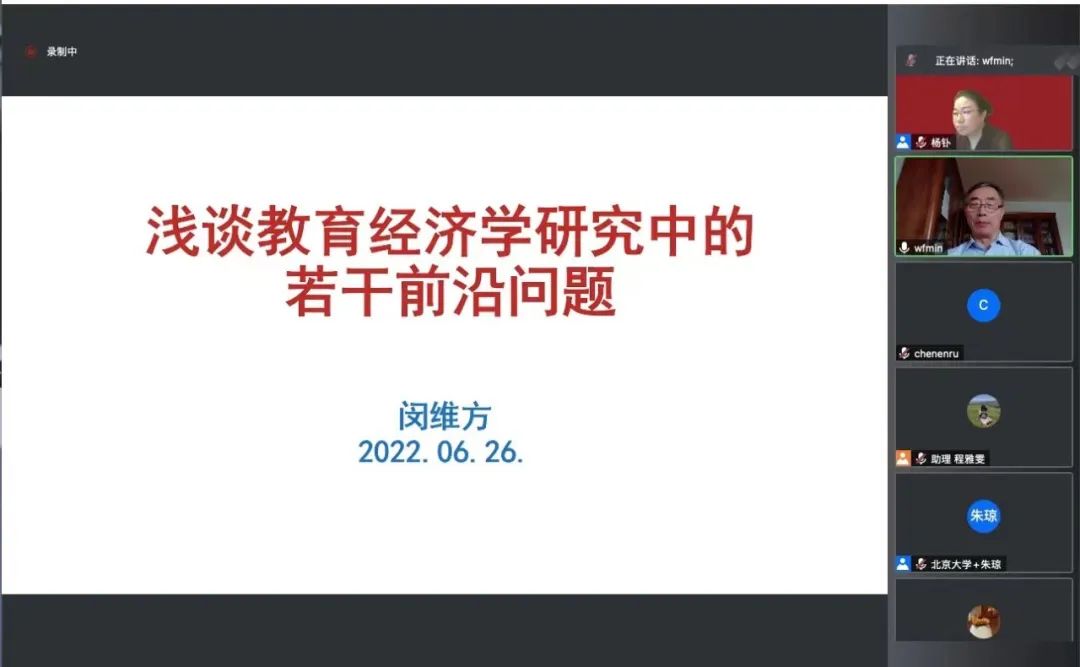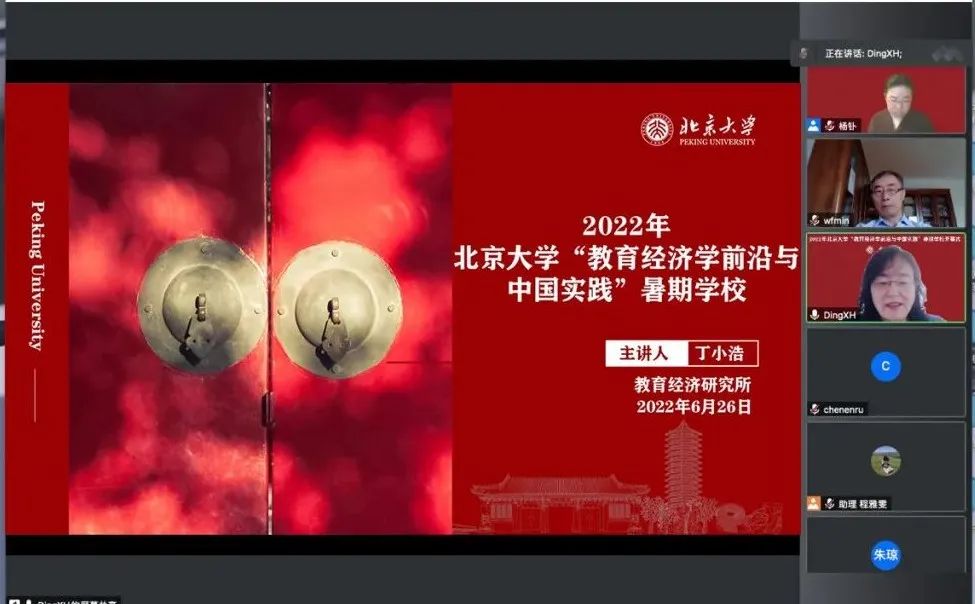 2022年6月26日,北京大学教育经济研究所主办的北京大学“教育经济学前沿与中国实践”暑期学校在杨钋副教授的主持下拉开帷幕。本届暑期学校基于教经所的师资力量,并聘请海内外知名学者授课,旨在促进国内外优秀学生的交流融合,加深学员对教育经济学发展前沿的了解,共同学习、探讨教育经济学的现状与未来发展。