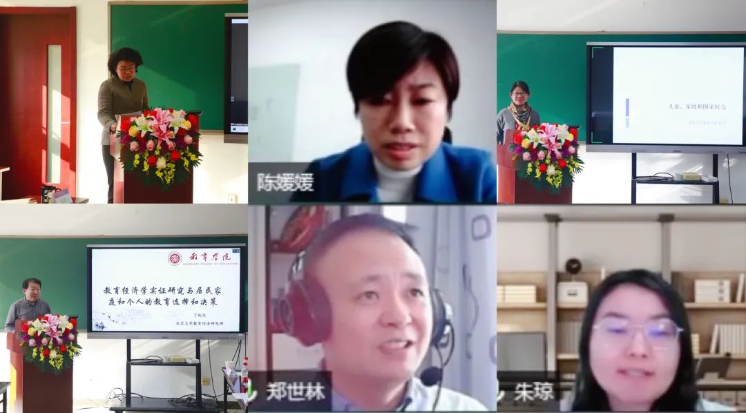 本专题由北京大学教育经济研究所杨钋长聘副教授主持。上海财经大学高等研究院陈媛媛教授利用模糊层次分析、基准回归等方法研究中考落户门槛为对人口流动的影响,发现异地中考门槛与城市人口数量、经济发展程度、就业情况以及高等教育资源密切相关。北京大学教育经济研究所张冉副教授从近年来一些法律事件出发,基于父母理论和国家亲权理论两个视角,研究儿童、家庭和国家权力之间的关系,梳理了国家干预家庭内教育事务的理念基础、理念特征、实施机制及其效果,并指出保护未成年人是父母、国家和学校的共同责任。北京大学教育经济研究所丁延庆副教授的报告总结了近年来的个人研究经历,并聚焦毕业生就业与高考报考咨询、“双减”政策的教育经济学分析和高考复读效果等研究案例,探讨“平均处理效应(ATE)”与私人教育决策、教育经济学实证研究与相关公共决策之间的辩证关系。中国社会科学院数量经济与技术经济研究所郑世林研究员基于大样本数据、采用基准回归模型、工具变量等方法实证检验了基础研究投入对高校理工科毕业生的影响,研究发现,基金资助显著提高了理工科毕业生的就业和收入,同时也显著提高了毕业生读研和上博的概率。北京大学教育经济研究所助理教授朱琼以国内某一所双一流大学为调查对象,基于多届本科生健康测试数据,分析大学生群体健康水平的变化趋势、大学生健康水平与学生发展的关系以及激励大学生参加体育锻炼的手段,研究发现,近十年来该高校学生身体素质缓慢提升,但体质健康测试分数呈缓慢下降趋势,将体测成绩与体育课成绩挂钩的政策效果并不明确。