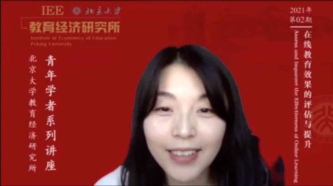 2021年1月30日上午,北京大学教育经济研究所举办了2021年第2期青年学者系列讲座。本期讲座主题为“在线教育质量的评估与提升”,由纽约大学博士后研究员李秋劼博士主讲。北京大学教育经济研究所副所长、教育学院副教授马莉萍主持了会议,美国马里兰大学助理教授刘璟和清华大学教育研究院助理教授郭菲对报告进行了点评,海内外千名师生通过腾讯会议、腾讯会议直播和B站直播等线上方式参与会议。