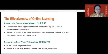 郭菲助理教授谈到,在线教育已经成为不可逆的趋势,线上和线下教育之间并非相互替代的简单关系,需要通过研究来理解在线教育的优势,并全面关注“教学内容”“教师”和“学生”三个维度。在对在线教育效果进行评估时,还需要细致地分析出混合教学与完全线下课程的差异,如教师质量和角色的转变、在线平台的功能细节等,以为教育实践提供更有针对性的可操作性建议。