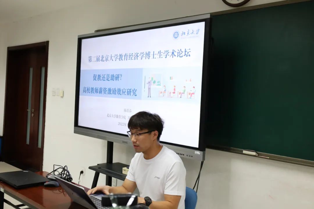 北京大学博士生陈得春汇报了《促教还是助研?高校教师薪资的激励效应研究》一文。研究发现教师薪资水平对教师科研产出存在正向的激励作用、但对教学增量投入并没有显著的激励效应,教师薪资差异在整体水平上对教师的教学增量投入和科研产出均不存在显著影响;进一步门限效应检验显示教师薪资水平对科研产出的正向激励效应存在两个门限值,而对教学增量投入始终没有显著影响。教师薪资差异对科研产出的正向激励效应存在一个门限值,超过门限值激励效应不显著;而薪资差异对教学增量投入的影响存在两个门限值,且两个门限值两侧的影响相反,即教师薪资差异与教师教学增量投入之间存在“倒U型”关系。随后两位点评专家肯定了研究问题的价值,从研究方法、研究结果的可能解释等方面与汇报人进行交流。
