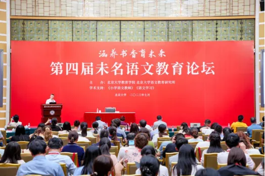 2023年7月15日至16日,第四届未名语文教育论坛在北京大学英杰交流中心举行。论坛由北京大学教育学院、北京大学语文教育研究所主办,《小学语文教师》和《语文学习》杂志社提供学术支持。北京大学语文教育研究所荣誉所长、教育部聘中小学语文教科书总主编温儒敏,北京大学中文系教授程郁缀,人民教育出版社编审、中国教育发展战略学会教师专委会学术委员会主任顾之川,北京第一实验学校校长李希贵,韬奋基金会理事长聂震宁,北京大学中文系教授、北京大学语文教育研究所所长汪锋等专家作主旨报告。来自全国各地的教育专家学者、教育教学管理者和研究者、一线语文教师等共计360余位嘉宾出席会议。北京大学教育学院党委书记张晓黎作开幕式致辞,论坛由北京大学教育经济研究所研究员蒋承主持。