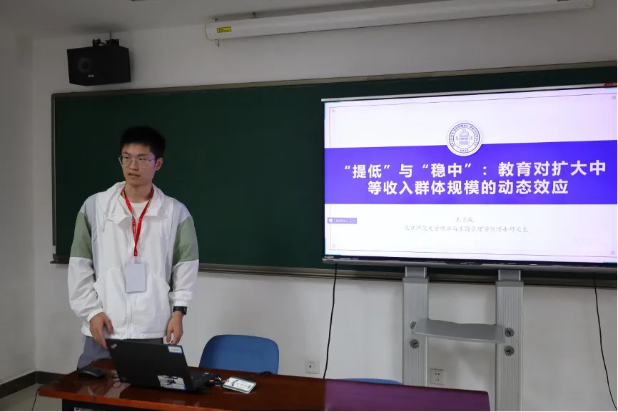 北京师范大学博士生王立成汇报了《“提低”与“稳中”:教育对扩大中等收入群体规模的动态效应》一文。该研究从收入流动性出发,将中等收入群体扩容的路径分为促进低收入群体成为中等收入群体(“提低”)和防止中等收入群体下滑为低收群体(“稳中”),依据2014年和2018年中国劳动力动态调查数据,发现:(1)教育可以显著促进“提低”与“稳中”,且教育对后者的贡献要远高于前者。其中,高等教育的贡献最为突出;(2)教育有助于实现人力资本积累,进而显著促进“提低”与“稳中”。然而,低收入群体接受更多教育并不能通过就业部门与就业类型的向上流动来迈入中等收入阶层,但教育却可以稳固中等收入群体的高质量就业来维持其自身地位;(3)我国教育质量在不断提升,但提升水平有限,仅有助于“提低”。与此同时,教育可以有效缓解劳动力就业市场的“性别歧视”与“户籍歧视”,但对于前者,教育的作用仅体现为“稳中”,对于后者,高等教育的贡献要更强。随后,点评专家肯定了研究的选题意义,同时对工具变量的选择理由与机制分析的理论基础提出了改进建议。