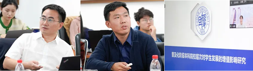 接下来,研讨会继续围绕“学校质量的增值评价”展开,由北京大学教育经济研究所长聘副教授黄晓婷主持。北京大学教育经济研究所研究员郭丛斌的报告主题为《县域高中教育质量评估体系建设研究》。县域高中的教育质量提升不仅能够带动义务教育均衡发展,更对促进社会公平和具经济发展具有重要价值。然而,县中面临多重发展困境,包括县域高中生源质量下降、教师质量有待提高、超级中学对县中优质资源的虹吸效应、基础教育财政“以县为主”造成县中教育经费投入不足以及对县中的评价方式过于单一等体制机制问题。基于此,该研究从学生能力和发展保障两个方面构建了县域高中学生发展质量评价体系。北京大学医学教育研究所副研究员吴红斌的报告主题是《高等院校效能的增值评价—基于我国医学院校的实证研究》。研究通过匹配学生问卷调查数据、医学院校临床医学专业水平测试数据,并运用多层回归模型对大学生的增值评价进行实证分析。研究发现,不同院校医学专业学生的学业表现增值存在显著差异,按照学生入学时的基线水平和入校后的增值可以将医学类院校划分成四种类型,这为进一步提升医学院校人才培养质量提供了研究借鉴。复旦大学高等教育研究所助理教授卜尚聪的报告主题为《普及化阶段不同类型高等教育对学生发展的增值影响》。该研究以我国高等教育普及化为背景,基于大规模问卷调查数据和行政管理数据,利用断点回归方法实证检验了不同层次高校对学生发展的增值影响、作用机制和异质性。研究发现:分数相近但是进入更高层次的高校会显著影响学生的就业选择,且可以给学生带来一定的人力资本增值,但增值作用相对有限,可能的原因是“鸡头凤尾”效应,进入高层次高校的学生在同辈比较中有较低的自我效能感,高校应将资源投入优势转化为人才培养质量,并重点关注弱势群体学生发展。