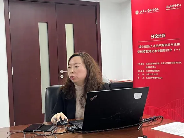 2023年12月22日,2024年新年论坛分论坛四“拔尖创新人才的早期培养与选拔”在上午十点半准时开始。北京大学教育经济研究所蒋承长聘副教授主持。北京大学教育经济研究所卢晓东研究员、范皑皑副编审、蒋承长聘副教授、北京大学中国语言文学系程苏东长聘副教授、北京市十一学校副校长刘伟出席论坛并作学术报告。此分论坛作为科技教师之家系列研讨会的重要活动之一,由北京大学教育经济研究所、教育学院、北京科学中心、科学教育研究基地共同举办。