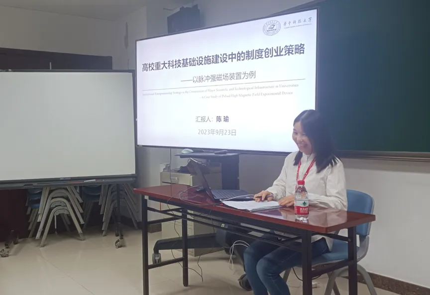 华中科技大学博士生陈瑜汇报了《高校重大科技基础设施建设中的制度创业策略——以脉冲强磁场实验装置为例》一文,展示了对脉冲强磁场实验装置建设过程的案例追踪研究,并探讨了高校重大科技基础设施建设中制度创业者采取的行动策略,为我国高校科技基础设施的建设和有组织创新提供理论与实践启示。随后两位点评专家对理论贡献的挖掘,以及研究方法的选择和改进提供了相关建议。