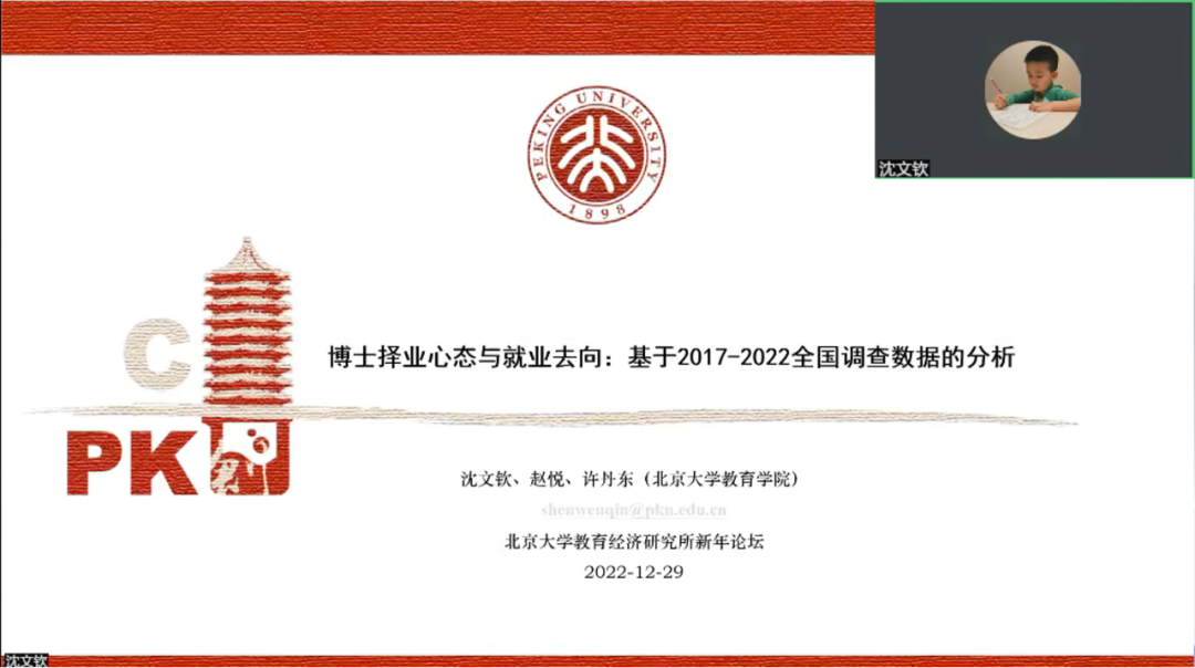 2022年12月29日下午,北京大学教育经济研究所2023年新年论坛“高质量就业的评价与对策研究”分论坛以线上直播的形式顺利举办。北京大学教育经济研究所副教授丁延庆、北京大学教育学院副教授沈文钦、北京外国语大学国际教育学院助理教授祝军、国家教育行政学院副研究员杨中超出席分论坛并作学术报告,论坛由北京大学教育经济研究所教授岳昌君主持。