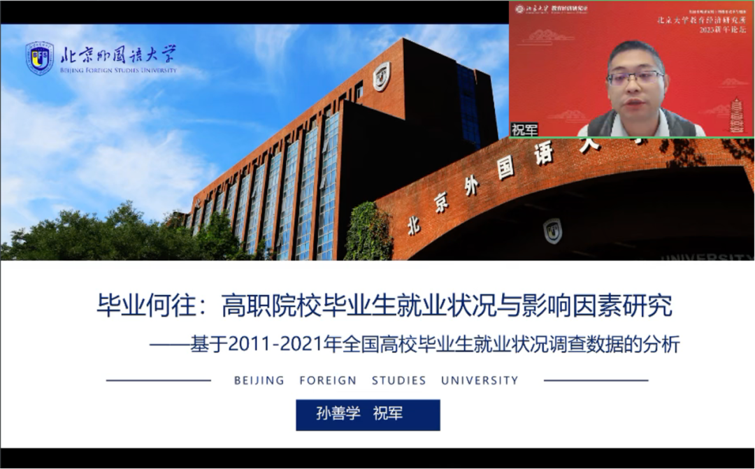 北京外国语大学国际教育学院助理教授祝军分享了题为《毕业何往:高职院校毕业生就业状况与影响因素研究》的报告。基于北京大学教育学院/教育经济研究所全国高校毕业生就业状况调查2011-2021年数据,分析了过去十年高职院校毕业生就业的特点和趋势,考察了高职院校毕业生的毕业去向、起薪水平和就业满意度情况及其影响因素。本文得到如下四点结论:第一,2011年以来,高职院校毕业生毕业落实率整体情况较好,但是呈现单位就业比例下降和升学比例上升的特点,且在2021年变化最为明显;第二,人力资本水平仍然是决定高职院校毕业生就业落实的主要因素,实习经历和职业证书尤为显著;第三,性别、家庭人均收入水平、学生干部经历和求职次数对高职院校毕业生的起薪有着显著影响;第四,家庭背景、人力资本和求职状况对于高职院校毕业生的就业满意度具有显著影响。最后,文章提出四点政策建议:一是加强指导,高职院校要关注后疫情背景下的高职院校毕业生就业变化,为毕业生提供更多就业指导与服务支持;二是提升技能,高职院校毕业生要把过硬的职业技能作为就业通行证;三是注重实训,高职院校毕业生要积极参与实习实践,通过专业实训,强化技能发展;四是深化校企合作,学校开辟市场,根据订制形式为企业培养人才,以帮助学生安心学习专业技能。