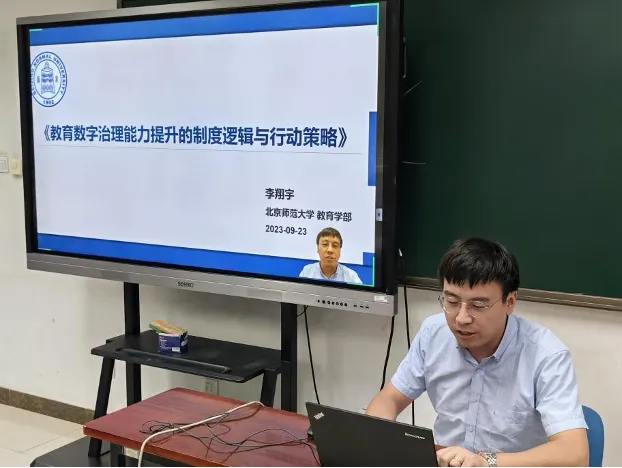 北京师范大学李翔宇汇报了《教育数字治理能力提升的制度逻辑与行动策略》。研究从制度视角探讨实现教育数字治理能力全面性提升的行动策略,发现制度对于教育数字治理能力有统一化的提升功能,教育数字治理能力的提升有赖于完善健全的教育数字治理制度。但是在教育数字化飞速发展时期,还是需要创新,形成稳定和成熟的制度,从而保障与推动教育数字治理能力提升。两位点评专家对于研究的选题思路和逻辑给予了肯定,并对研究的概念阐述与方法的多样性等方面提供了建议。