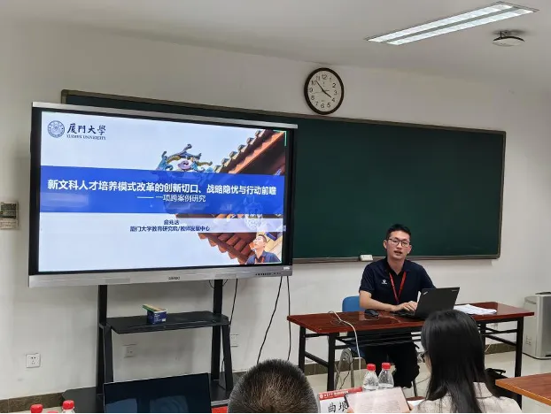 厦门大学俞兆达汇报了《我国高校新文科人才培养模式改革的切口、隐忧与前瞻——一项跨案例研究》。基于对全国17所高校新文科建设典型案例的分析,发现我国新文科人才培养模式改革创新的三个重要切口:理念革新重塑专业定位、知识交叉优化课程体系、技术赋能提升教学效能。这些实践开拓了高等文科教育的发展前景,但也潜藏着文科特质淡化、知识价值稀释和教学技术替代等战略隐忧,可能导致导向漂移、知识本体危机和教学约束。两位点评专家肯定了研究内容与意义,并对研究的实证拓展与框架连贯性等方面提供了指导。