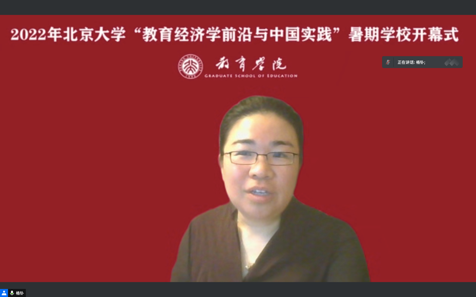 2022年6月26日,北京大学教育经济研究所主办的北京大学“教育经济学前沿与中国实践”暑期学校在杨钋副教授的主持下拉开帷幕。本届暑期学校基于教经所的师资力量,并聘请海内外知名学者授课,旨在促进国内外优秀学生的交流融合,加深学员对教育经济学发展前沿的了解,共同学习、探讨教育经济学的现状与未来发展。